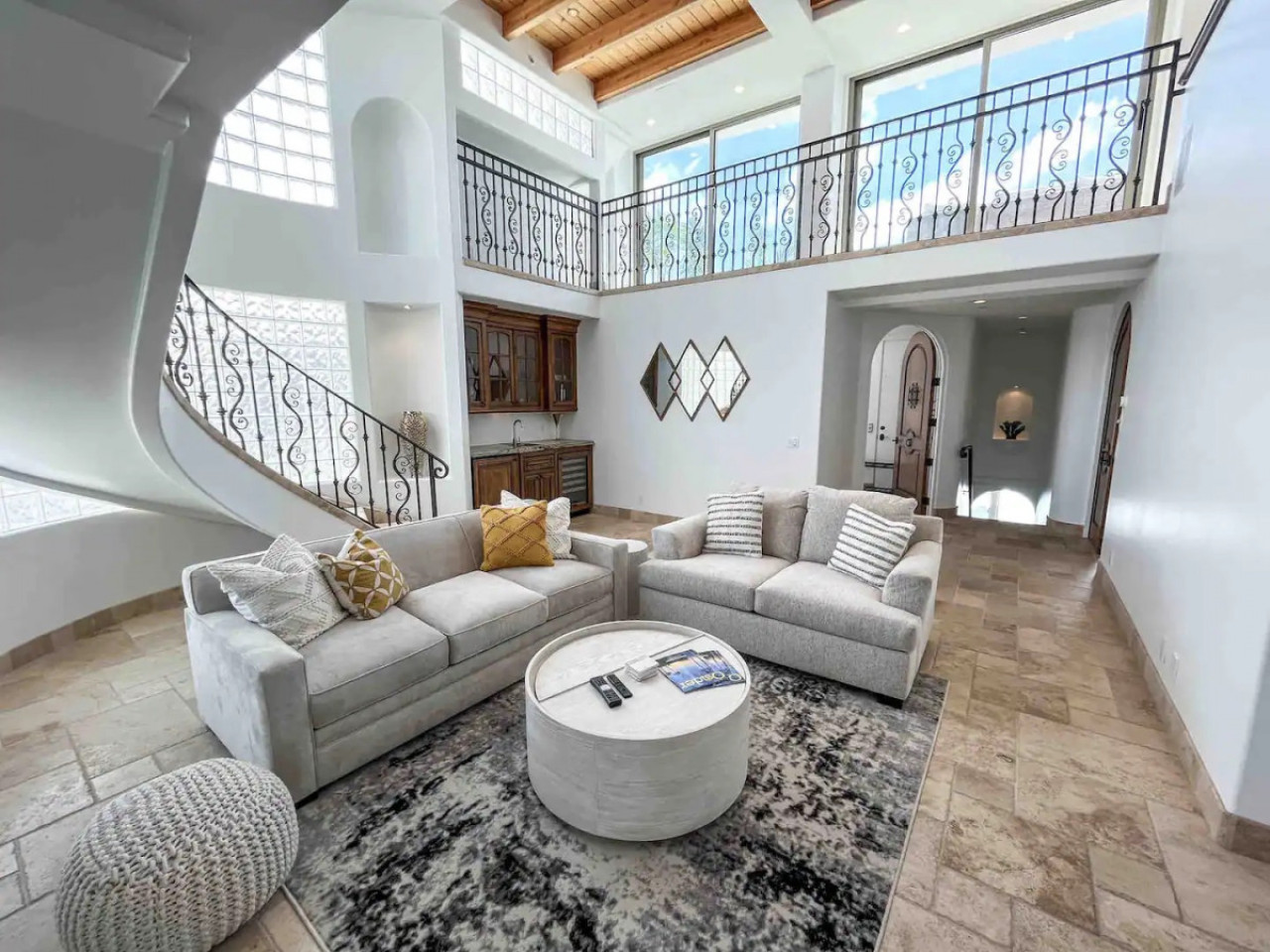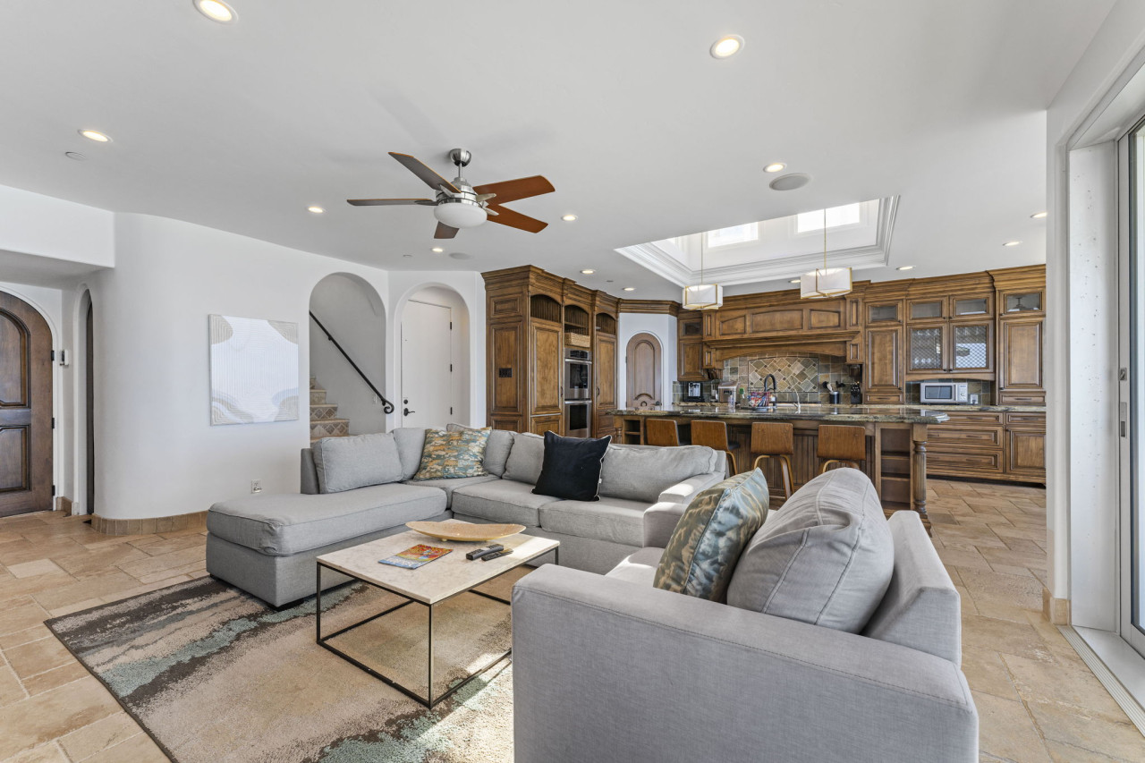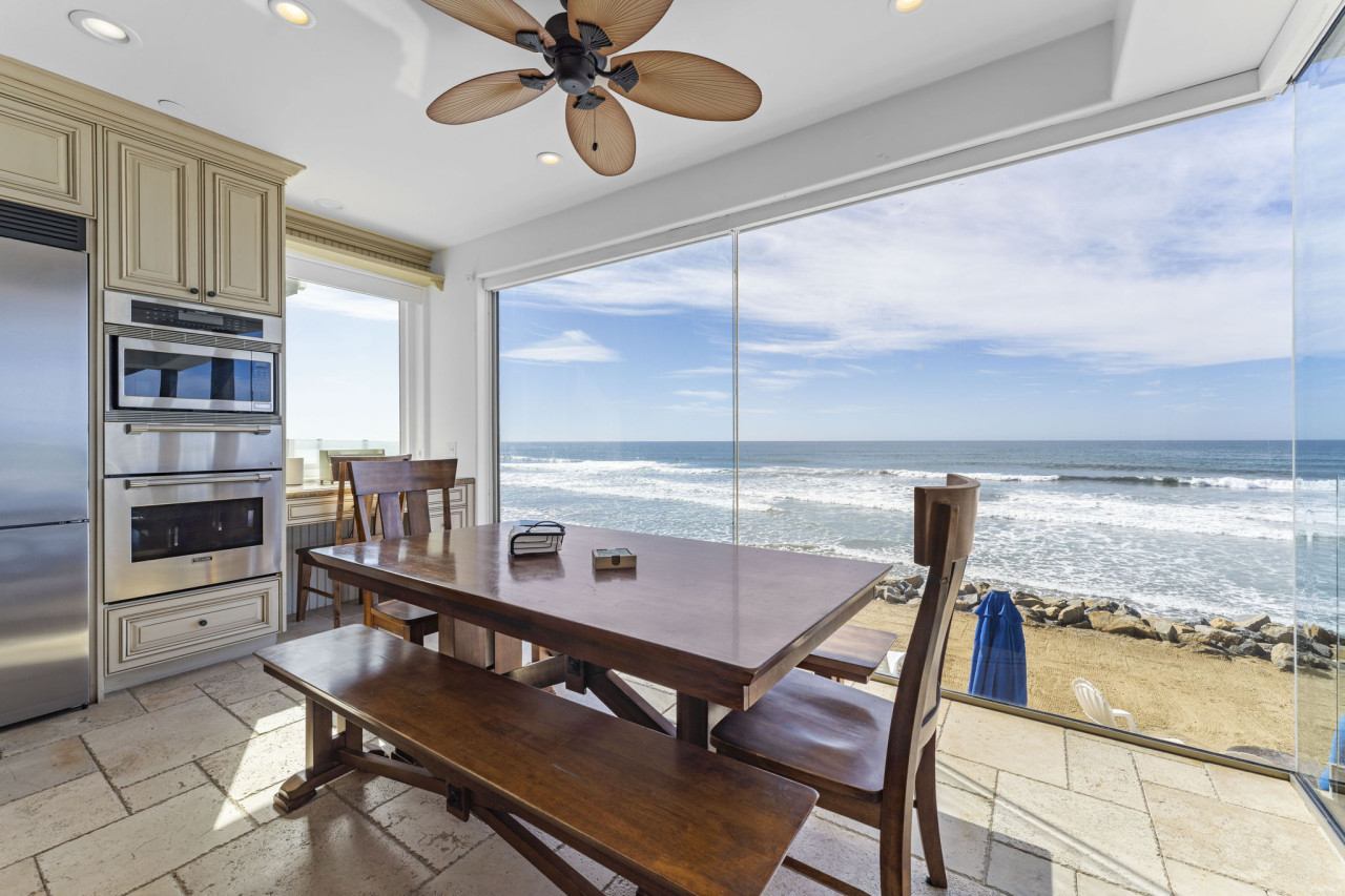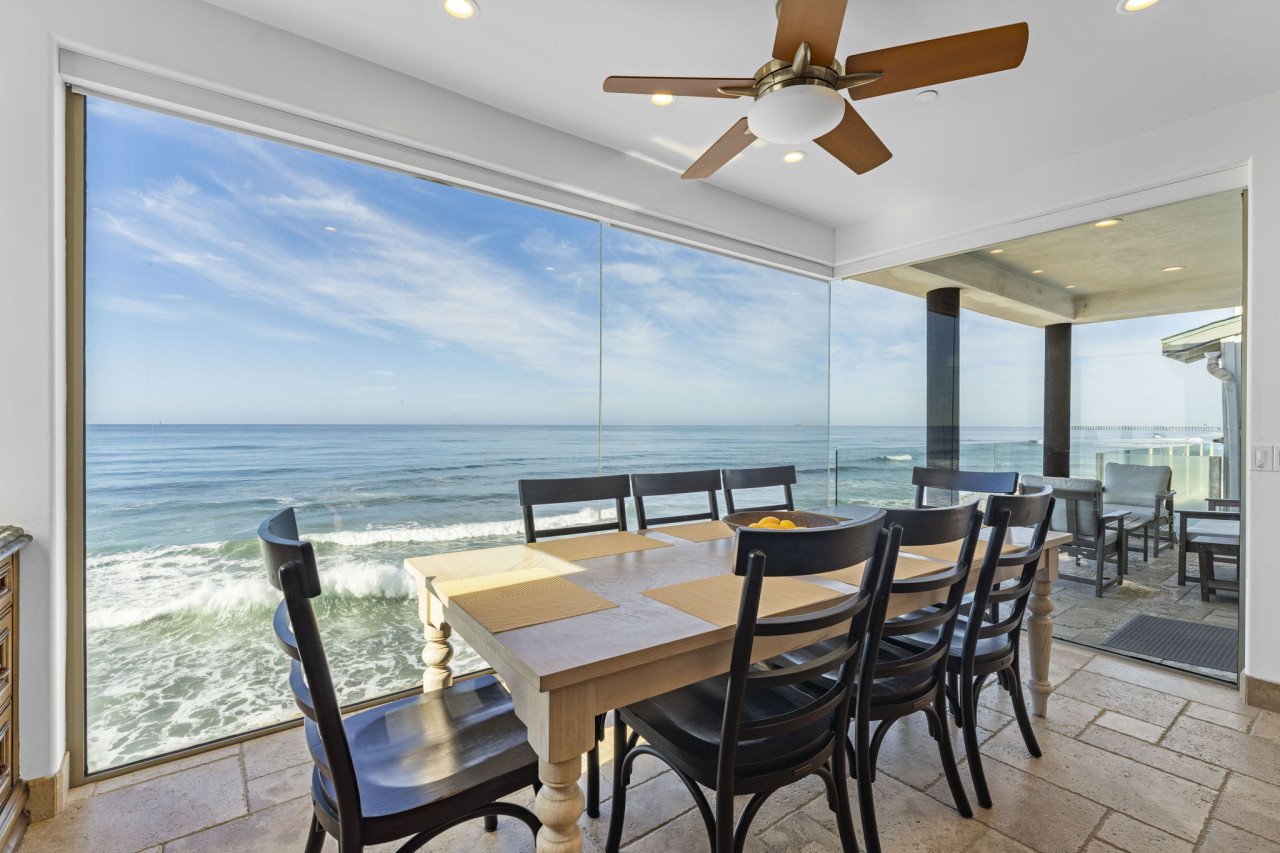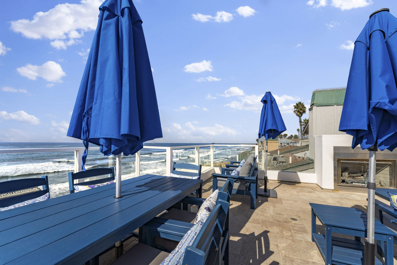/ nightWelcome to our breathtaking beachfront villa, an exclusive retreat offering luxurious accommodations across five stories with unparalleled, unobstructed views of the Pacific Ocean. Ideal for large gatherings, family reunions, or special occasions, this combined listing provides access to both Unit A and Unit B, offering the ultimate coastal getaway. This elegant property boasts: 7 Bedrooms (including a loft with additional sleeping accommodations) 9 Bathrooms 3 Living Rooms 2 Full Kitchens 2 Private Roof Decks 1 Beach-Level Patio 2 Balconies 3 Garages Private Beach Access You and your group will enjoy the entire villa, ensuring complete privacy and exclusive use of all amenities. A Walk Through Your Stay: Top Three Floors: Unit A Entering through the main door, you’ll be greeted by the expansive living and dining area with vaulted ceilings, a large flat-screen TV, and plush seating. Adjacent is a high-end, fully equipped kitchen with a large island, perfect for preparing meals for your group. The upper level features a loft-style bonus area with its own bed and bathroom, offering a cozy yet private space. Step out onto one of the two private roof decks—one designed for lounging under the stars with a fire pit, and the other outfitted with a dining table and BBQ grill. The middle level houses three spacious bedrooms, each with an en-suite bathroom for ultimate privacy and comfort. The master suite includes a king bed, seating area, and direct access to a private balcony. Bottom Two Floors: Unit B Accessible through the garage or side entrance, the lower two levels offer an additional self-contained living space. On the first level, you’ll find an open-concept living room, chef’s kitchen, sunken wet bar, and an extra cozy den known as the "Osider Den" with oversized seating, a desk, and a flat-screen TV. The beach level features three bedrooms, including a luxurious master suite with a king bed and twin daybed. Two additional ocean-facing bedrooms with queen beds share a Jack-and-Jill bathroom. All bedrooms have direct access to the private beach-level patio, designed for entertaining with shaded seating, a BBQ grill, and a long dining table. Outdoor Spaces: This villa is a paradise for outdoor living: Two Roof Decks: One with a fire pit and the other with outdoor dining and a BBQ grill. Private Balconies: Attached to both living areas and master bedrooms. Beach-Level Patio: Features a BBQ, lounge chairs, and shaded seating. Private Beach: Direct access for guests to enjoy sunbathing, swimming, or evening bonfires. Additional Features: High-speed WiFi throughout the villa Smart TVs in all living rooms Central air conditioning for your comfort Secure garage parking for up to three cars (one for each unit) Water filtration systems in both kitchens Enhance Your Stay: Customize your experience with optional add-ons such as private yoga sessions on the beach or hiring a private chef to prepare a gourmet meal for your group. Please inquire for details. Prime Location: Located in a quiet, upscale area of Oceanside, this villa is close to top attractions like the Oceanside Pier, Carlsbad Village, and charming local restaurants and coffee shops. Whether you want to surf, explore the coastline, or simply unwind, this villa places the best of Southern California at your fingertips. Important Notes: Non-smoking and no-pet property. No parties or events to maintain a peaceful environment.