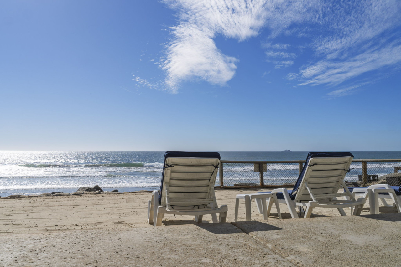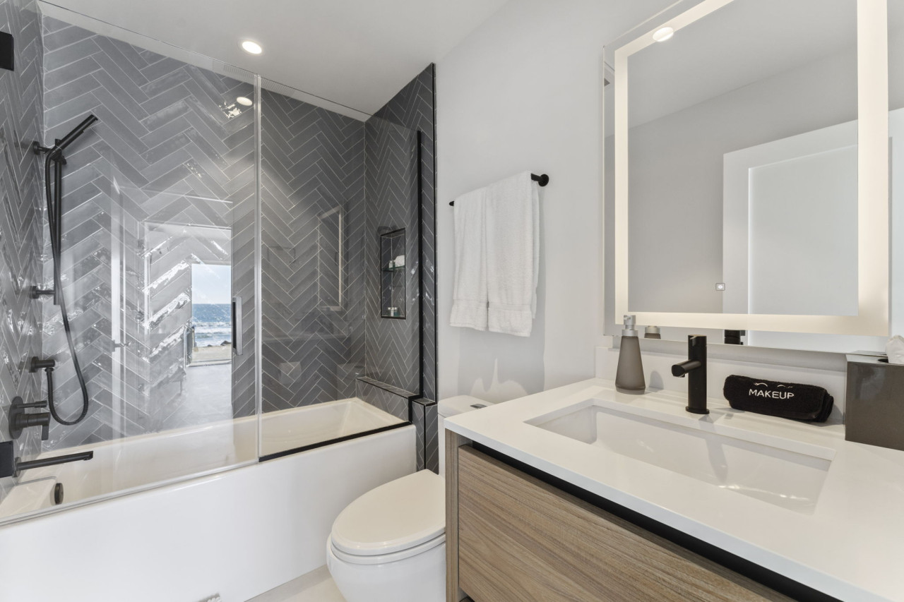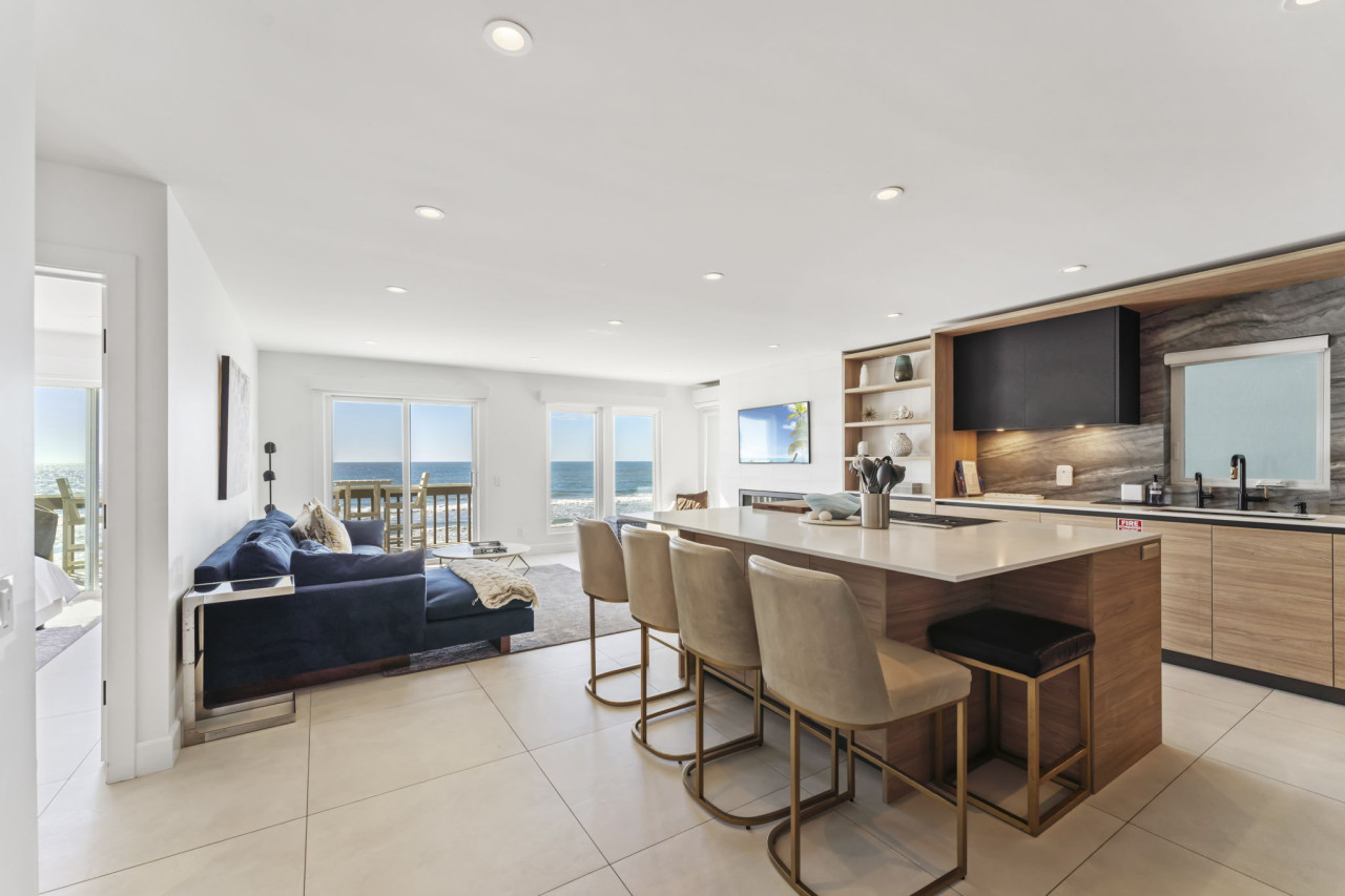 / nightWelcome to your ultimate beachfront escape! This stunning 3-bedroom, 3-bath, two-story owner’s unit offers sweeping ocean vistas, unmatched comfort, and exclusive access to the private beach below. Perfect for families or groups, this meticulously maintained property combines clean, modern design with a subtle coastal influence, creating an inviting and tranquil retreat. This listing is for Unit A, which occupies the bottom two floors of a three story condo/townhouse style building. Unit A is the townhouse style, entering the main floor from street level, and the lower level with bedrooms, laundry room, and direct beach access. Unit B is the upstairs condo style rental. Up one flight of stairs from street level, and occupying the entire top floor. Private beach access is granted via gate on street level, down one flight of stairs. The only shared spaces with Unit A and Unit B are the two-car garage (one space for each unit - large SUV will not fit), the driveway, and the private beach area. A Walk Through Your Stay: Main Living Area (Upstairs): Enter the open-concept main floor and be greeted by breathtaking ocean views from the private balcony. The spacious living area features plush sofas, a warm fireplace, and a large flat-screen TV with extended cable, creating the perfect space for relaxation or entertainment. The clean and modern decor complements the stunning coastal views, offering an ideal balance of style and comfort. The adjacent kitchen is sleek and modern, equipped with high-end appliances and everything you need to prepare delicious meals for your group. The dining area is conveniently integrated into the large kitchen island, creating a seamless and functional space for meals or casual gatherings. Bedrooms & Layout: This condo comfortably sleeps up to 8 guests: • Primary Suite (Downstairs): Luxurious king-size bed, split AC unit, flat-screen TV with cable, and direct access to the private beach via sliding doors. Includes an en-suite bathroom for added privacy. • Second Bedroom (Downstairs): Features two queen beds in a stacked bunk bed style, split AC, and a flat-screen TV with cable. This room also has sliding doors that open directly to the private beach area. • Third Bedroom (Upstairs): Located on the ground floor for easy access, this suite includes a king-size bed, sliding doors to the private balcony, and easy access to the upstairs bathroom. Bathrooms: The condo includes three thoughtfully designed bathrooms for your convenience: • Upstairs Bathroom: Easily accessible from the living area and third bedroom. • Primary En-Suite Bathroom (Downstairs): Serves the master suite with elegant fixtures and amenities. • Shared Downstairs Bathroom: Conveniently located for the second bedroom. Outdoor Features: This condo is a true paradise for beachfront living: • Private Balcony (Upstairs): Furnished for outdoor dining or morning coffee with unparalleled views of the Pacific Ocean and Oceanside Pier. • Private Beach (Downstairs): Accessible directly from the downstairs bedrooms. This exclusive area is reserved for building residents and offers a serene space for sunbathing or enjoying the sound of the waves. Additional Amenities: • Secure Parking: One designated spot in the on-site garage. • Air Conditioning: Split AC units in all bedrooms for personalized comfort. • Entertainment: TVs with extended cable in every bedroom and living room. • Washer & Dryer: Located in-unit for your convenience. Prime Location: Nestled along the picturesque coast of Oceanside, this condo offers direct beach access and proximity to the city’s best attractions. Stroll to local restaurants, boutique shops, or the iconic Oceanside Pier. For a day of adventure, explore nearby Carlsbad Village or rent an e-bike to cruise along the scenic coastline. Important Notes: • Requires Stairs • This is a non-smoking, no-pet property. • Parties or events are not permitted to ensure a peaceful environment for all guests. Surfer and Ocean Lovers Paradise! South Oceanside — or as the locals lovingly refer to it, South O — is a neighborhood that’s known for its deep roots and authentic personality. The charming business district has recently undergone a revitalization, sporting new restaurants, collaborative artisan retail spaces, and nightly entertainment. Outside of the main business corridor, the South O neighborhood touts a beautiful beach, retro bowling alley, freshwater lagoon, and nature center; perfect for family-friendly adventures.