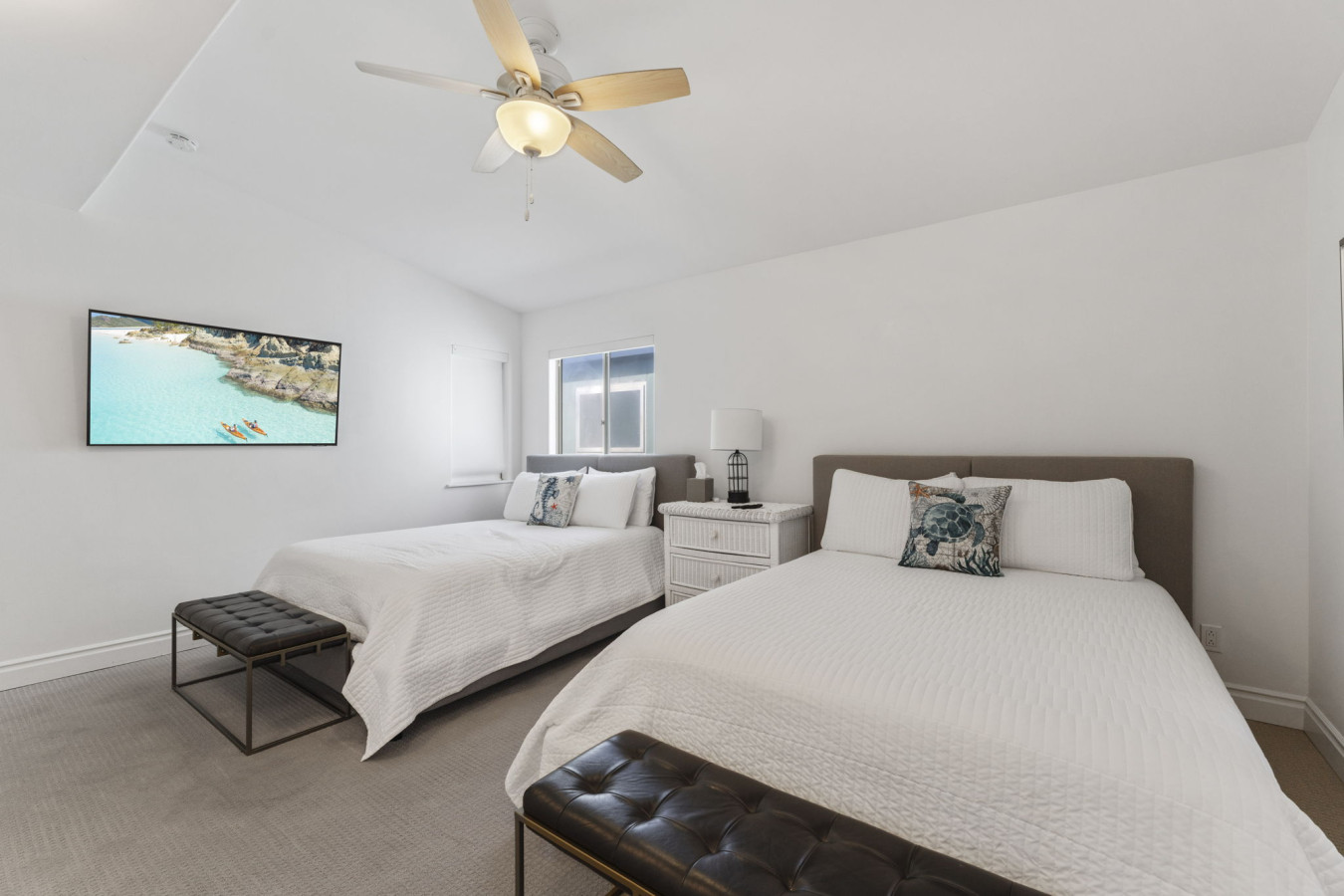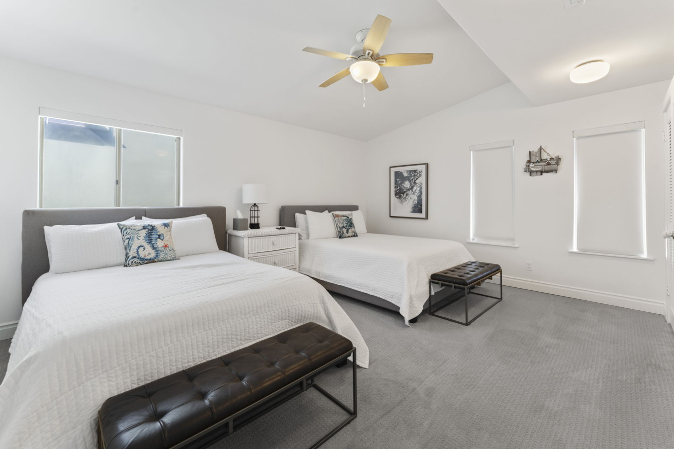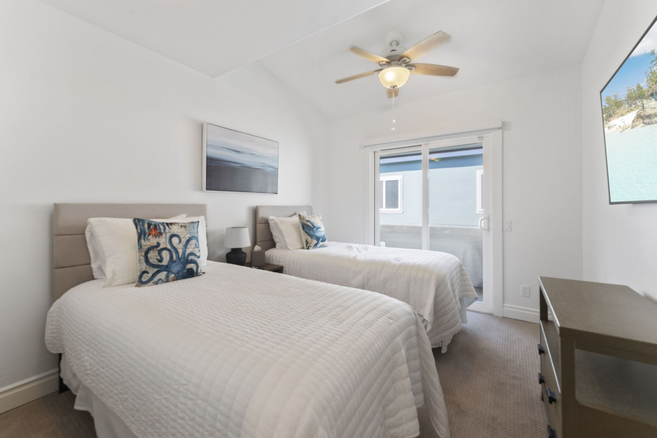 / nightOceanfront Home with Private Balcony & Private Beach Welcome to your ultimate beachfront retreat! This stunning 3-bedroom, 2-bath condo offers the perfect blend of relaxation, style, and comfort. With awe-inspiring ocean views from the living room and primary bedroom, you’ll be immersed in coastal living from the moment you arrive. Enjoy exclusive access to your private balcony and semi-private beach, shared only with the lower unit. This listing is for Unit B, which occupies the upper floor of a three story condo/townhouse style building. Unit B is the condo style, entering front door and up one flight of stairs from street level, occupying the entire top floor. Private beach access is granted via gate on street level, down one flight of stairs. The only shared spaces with Unit A and Unit B are the two-car garage (one space for each unit - large SUV will not fit), the driveway, and the private beach area. A Walk Through Your Stay: As you step into the condo, you’ll be greeted by a spacious open-concept living and dining area, designed to capture the stunning ocean vistas. Sink into the cozy seating in the living room, the perfect place to unwind with a movie or simply watch the waves roll in. Adjacent to this space is the fully equipped kitchen, stocked with everything you’ll need to prepare delicious meals for your group. The private balcony, accessible from the living room and primary bedroom, is a true highlight of this property. It’s the ideal spot for morning coffee or evening cocktails, with the ocean breeze and soothing sound of waves as your backdrop. Bedroom Layout: This condo comfortably sleeps up to 8 guests with the following arrangement: • Primary Bedroom: King-size bed, ocean views, and direct access to a shared bathroom. • Second Bedroom: Two queen beds, perfect for families or friends. • Third Bedroom: Two twin beds, great for kids or additional guests. The two bathrooms ensure everyone has plenty of space to freshen up after a day at the beach. Outdoor Features: Step outside and walk down the stairs to your semi-private beach, shared only with guests of the lower unit. This tranquil stretch of sand is perfect for enjoying the beauty of the Pacific Ocean. For those who prefer a shaded spot, the private balcony offers a serene outdoor space with oceanfront seating to relax and recharge. Additional Features: • High-speed WiFi throughout the condo. • Smart TVs in the living area for entertainment. • Fully equipped kitchen. • Washer and dryer in the unit for convenience. • One Dedicated garage parking for your stay. Prime Location: Located in South Oceanside, this condo is nestled in a vibrant community with easy access to local attractions. Stroll or bike to nearby restaurants, artisan shops, and entertainment venues. Explore the beautiful beach, nearby freshwater lagoon, and nature trails for family-friendly adventures. Important Notes: • Stairs Required • No pets are allowed in this unit. • This is a non-smoking property. • Semi-private beach is shared with the lower unit but offers ample space to enjoy.